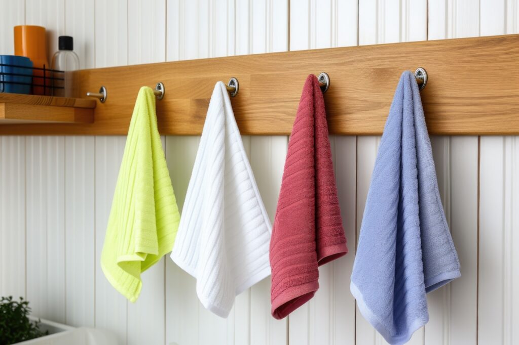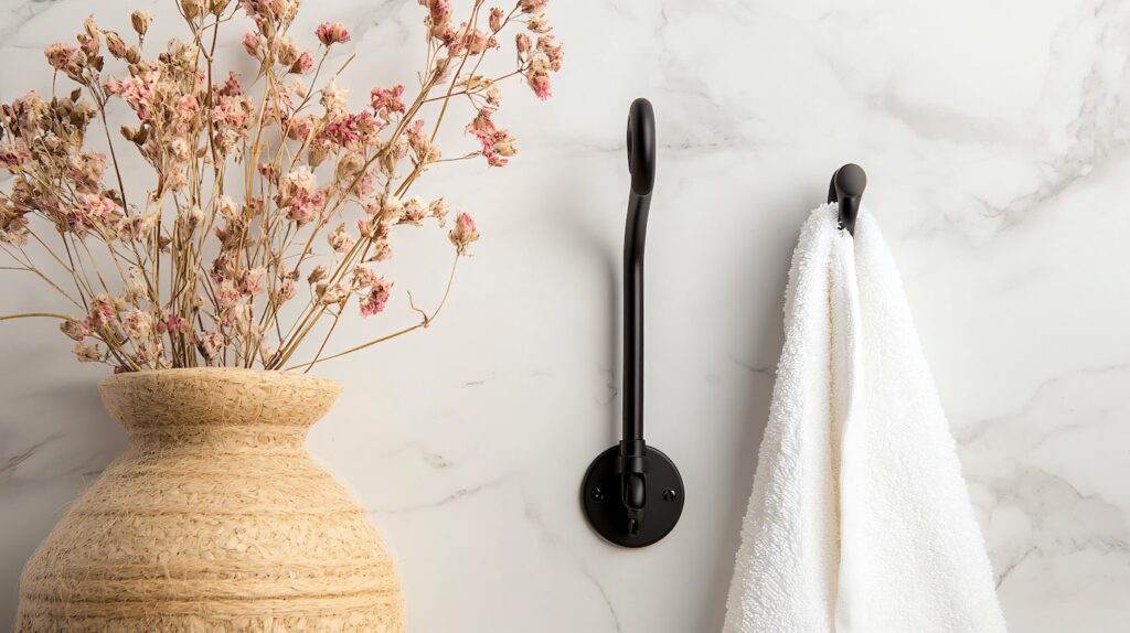 Running out of bathroom storage ideas for small bathrooms? Keep towels accessible and save floor space with adhesive towel hooks.