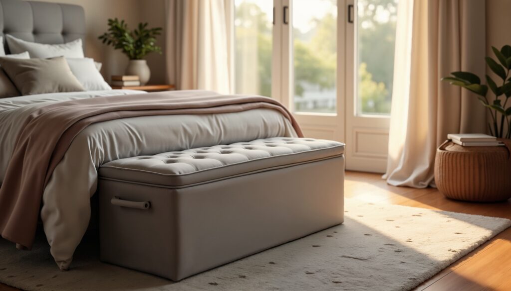 For a stylish look, opt for a bench with hidden storage that matches your home decor.
