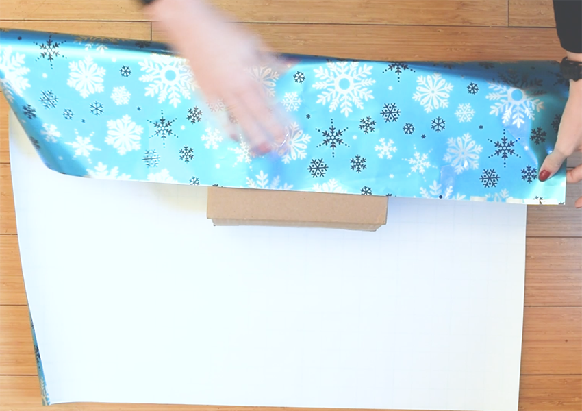 You’ll want a piece that wraps all the way around the long end of the package, with an inch or so overlap. The shorter ends should come up halfway on the sides.