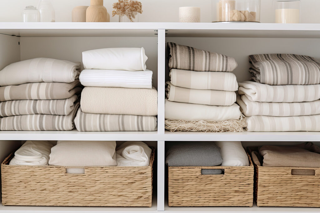 With the larger pieces sorted, it’s time to focus on the smaller details. Consistently going through closets, cabinets, and storage spaces to get rid of items you no longer need works wonders for maintaining an organized space, and your peace of mind. For long-term solutions, consider storage bins, baskets, and shelving to neatly organize items, and label containers to easily identify what’s stored inside. Get creative with your storage options—think under the bed, adding shelves, using hooks, and more.