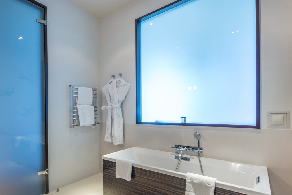 Opt for frosted or etched glass window coverings that offer both privacy and style. Frosted glass allows light to filter through while obstructing the view from the outside.