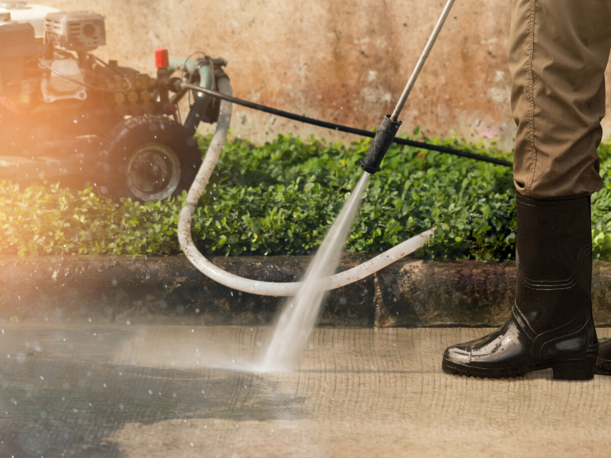 - Pressure washer or a stiff brush