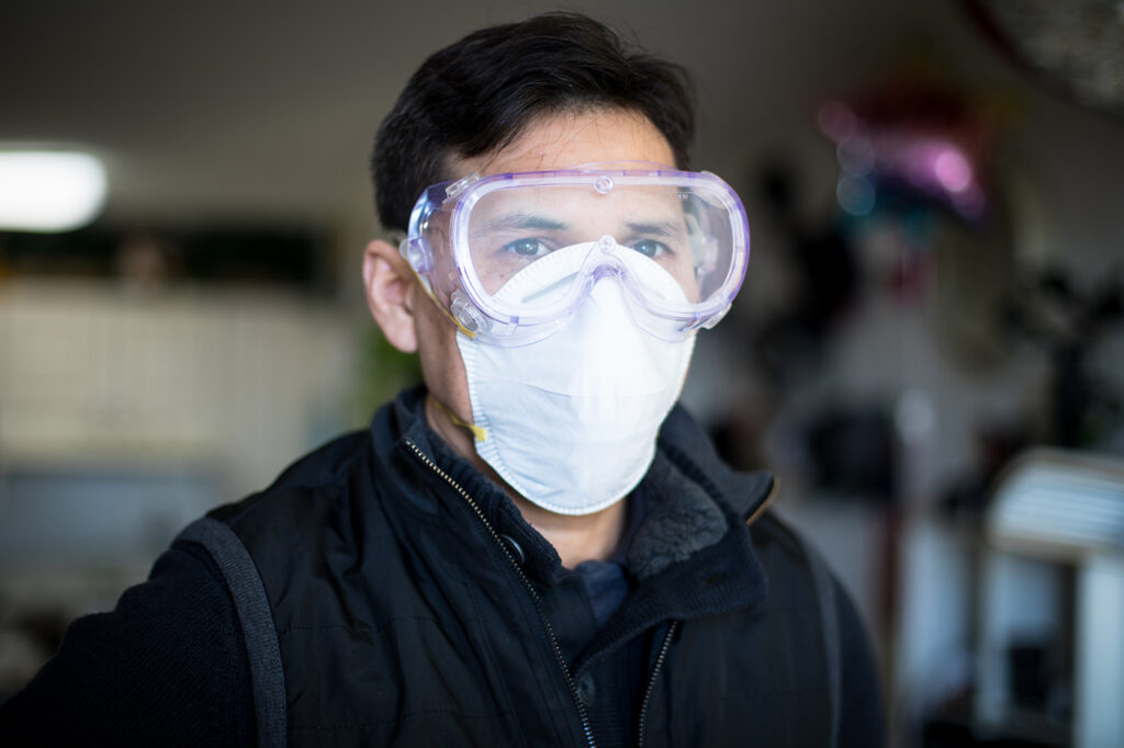 Make sure you’re wearing old clothing for the job as well as a mask that covers your nose and mouth along with gloves and safety goggles.