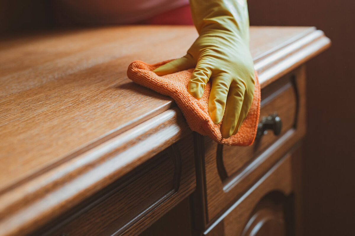 Place oily rags in a bucket of water, as they can generate heat as they dry, potentially causing fires. Allow the furniture to dry either overnight or as per the instructions. You can hang the rags separately later to dry. Once dried, you can dispose of the rags without risk, but do not reuse them.