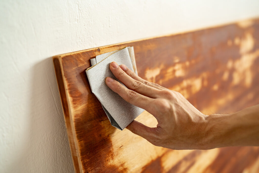 First clean the wood, then allow the wood to dry. Then prep the surface by sanding with 400-grit sandpaper. Sanding helps to open the wood grain. Next, wipe the surface with a tacky cloth to remove any dust created while sanding. When ready, brush the sealant onto the wood surface. If you can’t complete this job outdoors, make sure you’re working in a well-ventilated area.