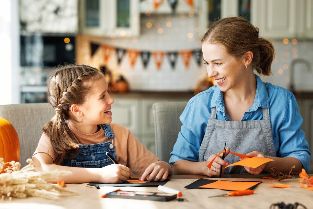 • Craft Halloween silhouettes of witches, cats, or bats by cutting their shapes out of black cardboard and taping them to your windows.