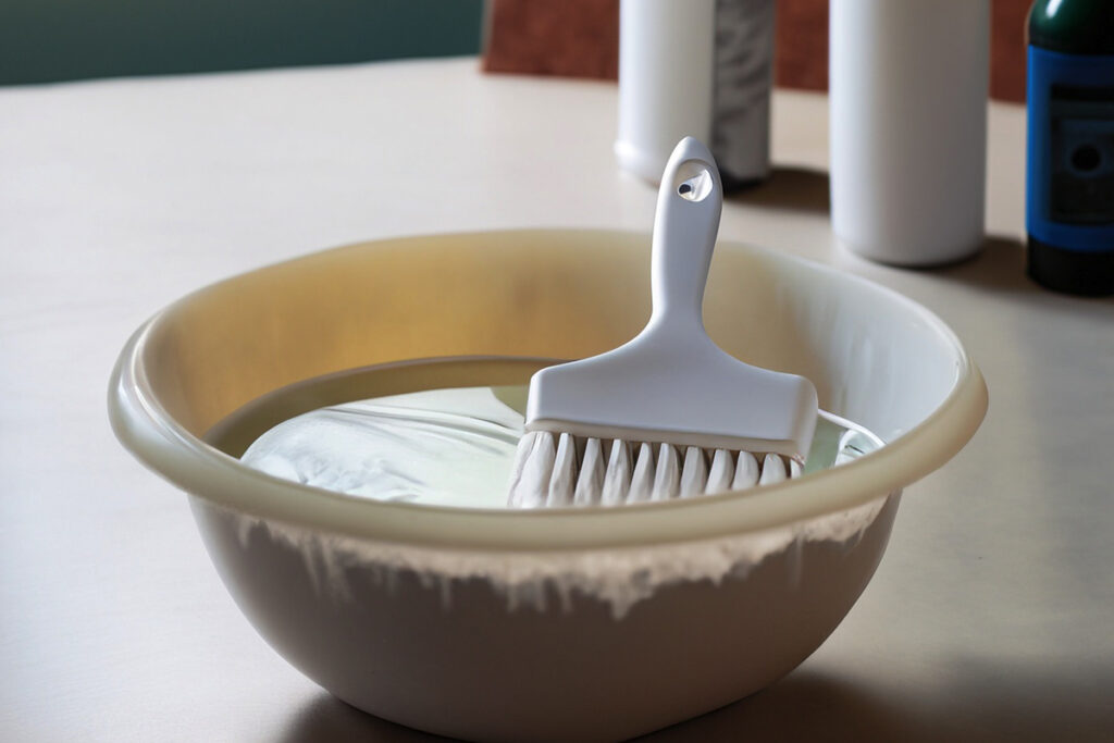 For fusion or enamel paints, a rounded brush with a mixture of natural and synthetic brushes should yield the best results. Make sure you have enough paint to cover the bristles, but not so much paint that it’s dripping off.