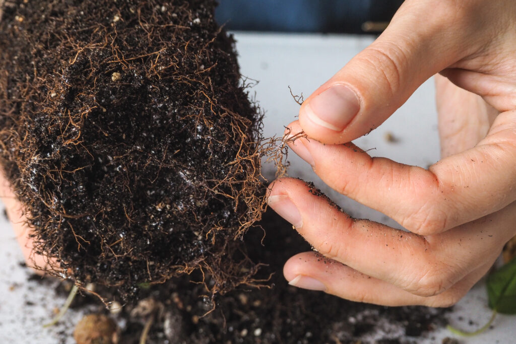 This can happen in many ways, whether you accidentally damage a root while repotting a plant or your plant starts suffering from root rot caused by overwatering, poor drainage, or even soil fungi. When a plant outgrows its pot, the roots become compacted, which can cause further damage. To check for root rot, pull your plant out of its pot. If the roots are white, they are healthy. If they’re dark and foul-smelling, it’s time to consider a new plant.