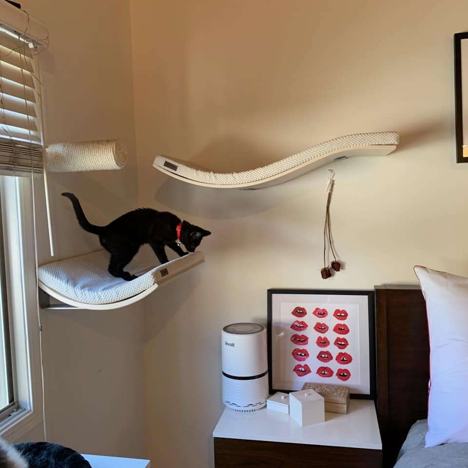 Yan F. climbed 16 feet to hang this impressive gallery of illustrated plants. Fellow Taskers Mohsen G. and Dennis V. also impressed with their mounting skills—laser beams and cats don’t lie!