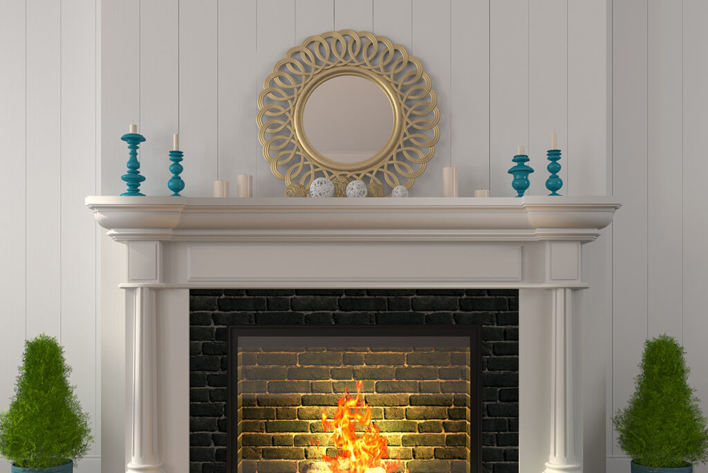 1. Mirrors. Mirrors are a classic item to hang over your fireplace. Not only do they add perceived space to a room, but they can also reflect the flame’s cozy glow.