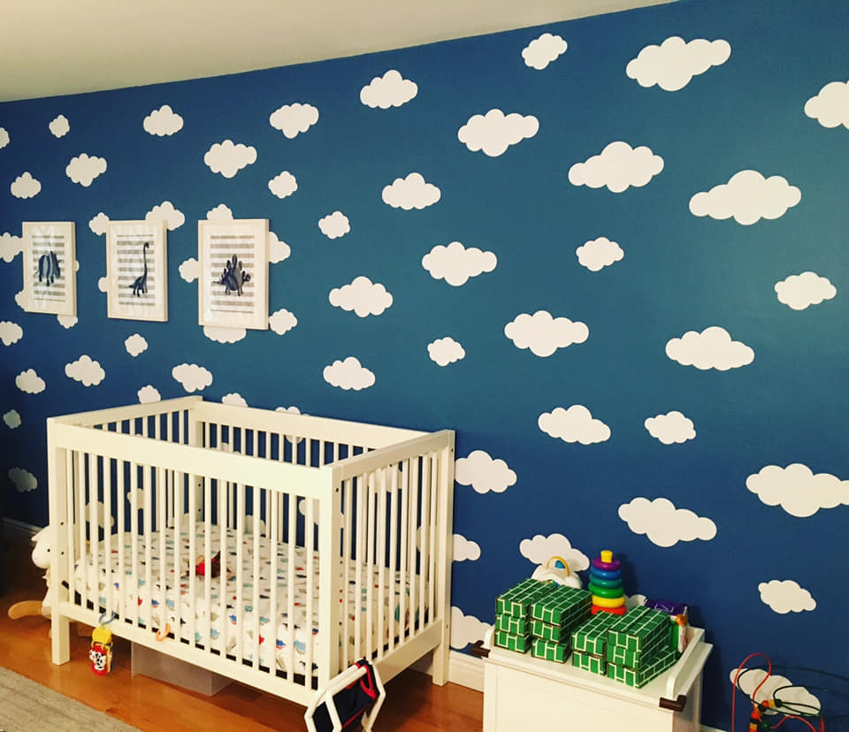 In New York, Tasker Claire F. created a dreamy nursery with cloud wall decals, while Terry N. contrasted red and gray paint for sharp lines and dramatic effect.