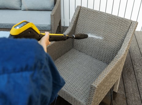 Sprays might keep the bugs away, but there are all kinds of algaes, mildews, and mold that are constantly trying to make a home in your patio and furniture. No matter how tidy you keep your patio, these microorganisms make their homes wherever it’s warm and moist--like it gets in the early morning and all day long in some climates.